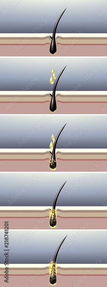 Hair Care 3d Illustration Rejuvenation Technology Damaged Hair Treatment From Roots To Tips Stimulation Of Hair Growth Process Drops Of Hair Care Products Falling On The Hair Follicle Stock Illustration Adobe